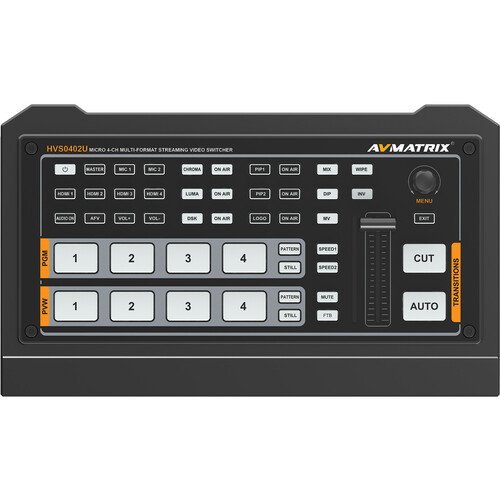 AVMATRIX Micro 4-Channel HDMI & DP Video Switcher with Streaming & Recording price in Kenya is Kshs 65,399.Switch up to one DisplayPort and four HDMI video inputs while monitoring the program feed with the Micro 4-Channel HDMI & DP Video Switcher from AVMATRIX. This compact switcher offers RTMP streaming via its LAN port, supports up to 1080p60 video input and output with embedded audio, and offers audio mixing using the two analog stereo 3.5mm mic/line inputs and output along with the embedded audio. Switcher control options include push buttons, a T-bar, and IP control via the LAN port.