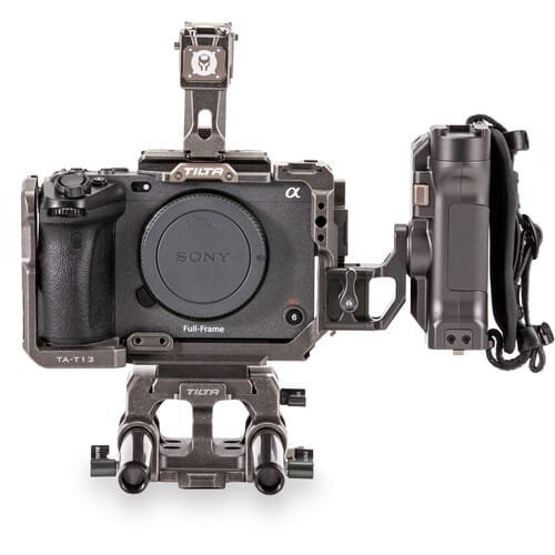 Tiltaing Sony FX3 Pro Kit Price in Kenya is Ksh 68,000. Protect and add a 15mm LWS baseplate system, top and R/S handles, and more to your Sony FX3 camera with the dedicated tactical gray Tiltaing Sony FX3 Pro Kit from Tilta. This formfitting full-frame cage kit includes a 15mm LWS baseplate with 8″ rods, an F570 left-side power handle with run/stop capability, a rotatable top handle, a run/stop cable, an HDMI male-to-female cable, an HDMI cable clamp, an HDMI and R/S cable clamp, a detachable top plate, and an Arca-Swiss quick release bottom plate.